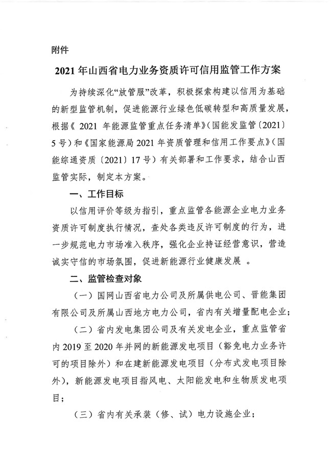 | 山西能源監(jiān)管辦印發(fā)《2021年山西省電力業(yè)務(wù)資質(zhì)許可信用監(jiān)管工作方案》 |