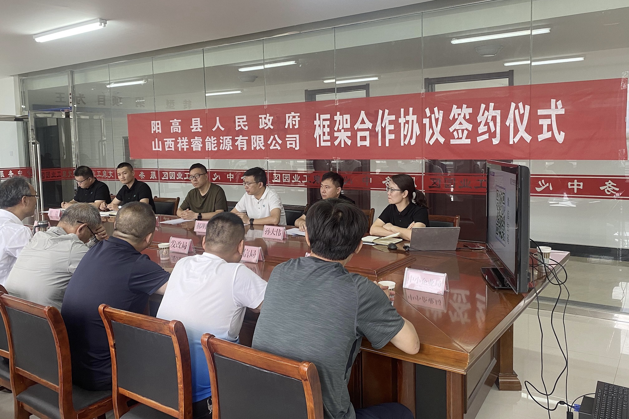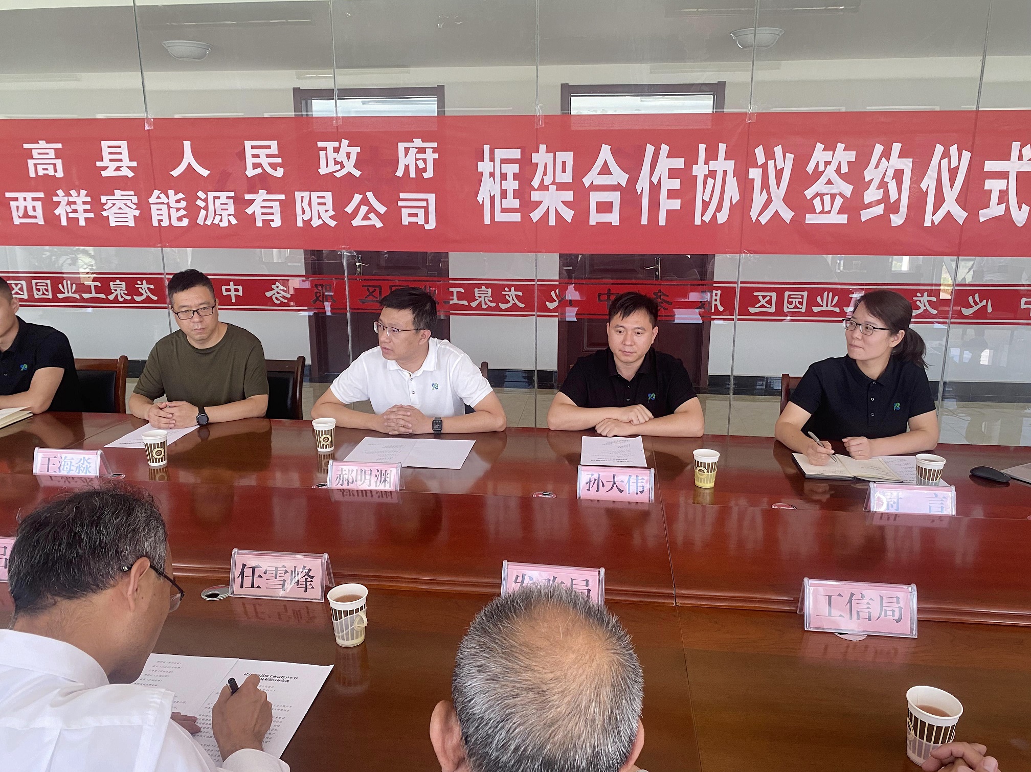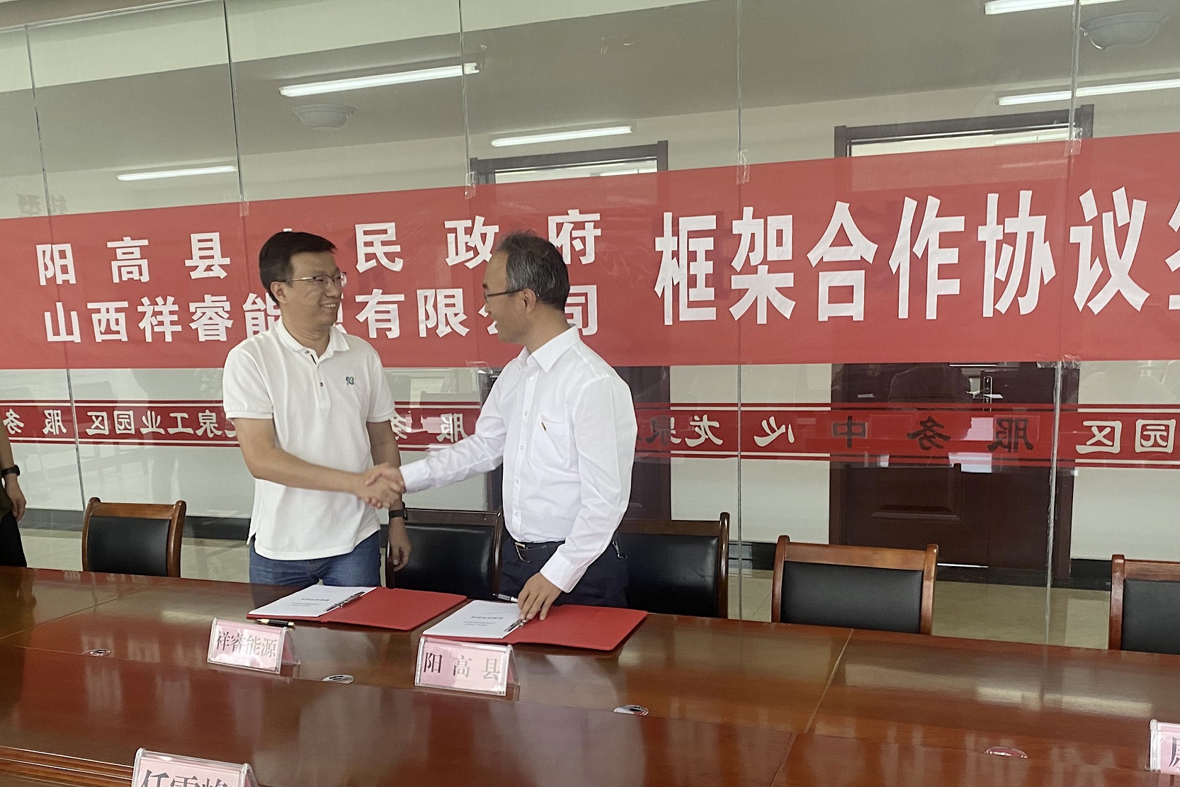 8月26日,“陽(yáng)高縣人民政府·山西祥睿能源有限公司框架合作協(xié)議”簽約儀式在陽(yáng)高龍泉工業(yè)區(qū)順利舉行。陽(yáng)高縣副縣長(zhǎng)任雪峰、龍泉工業(yè)園區(qū)管委會(huì)主任呂福軍、祥睿能源執(zhí)行總裁郝明淵、智慧工業(yè)BU總經(jīng)理尉言、總工孫大偉等出席簽約儀式。
