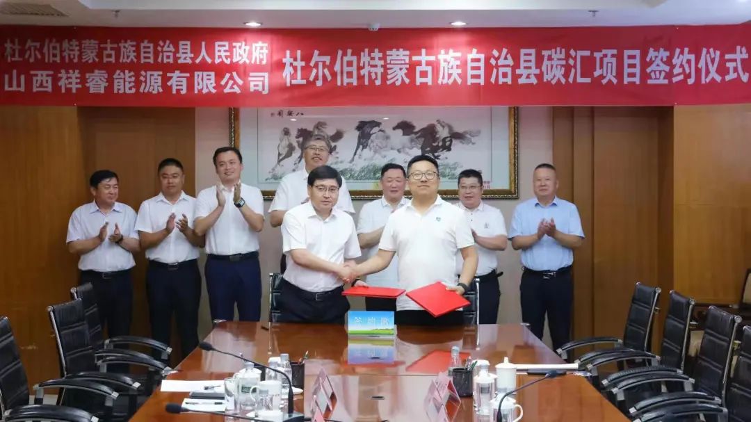 7月2日,黑龍江省大慶市杜爾伯特蒙古族自治縣人民政府與山西祥睿能源有限公司在杜蒙縣舉行了碳匯項(xiàng)目簽約儀式。杜爾伯特蒙古族自治縣委書記張劍,縣委副書記、縣長朱學(xué)良,縣領(lǐng)導(dǎo)田偉、王東福、梁貴平,祥睿能源董事長王正通、黑龍江祥睿能源總經(jīng)理?xiàng)钫疾ǔ鱿灱s儀式,山西藍(lán)頓旭美食品有限公司董事長郝旭等參加簽約儀式。這次簽約標(biāo)志著祥睿能源碳匯項(xiàng)目落戶杜蒙縣,將為該縣生態(tài)高質(zhì)量發(fā)展提供碳減排數(shù)字科技運(yùn)營與發(fā)展賦能。