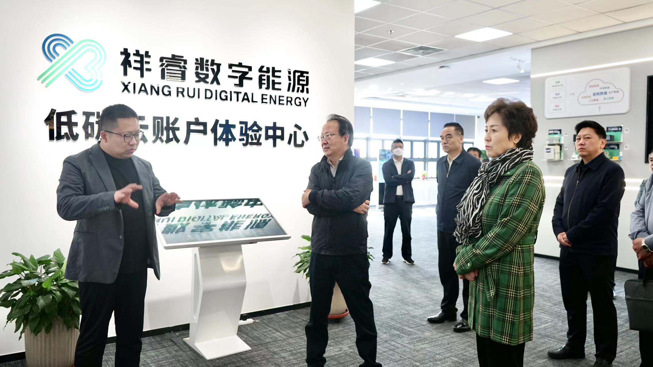 在祥睿能源,李曉波等領(lǐng)導(dǎo)參觀了祥睿數(shù)字能源展廳,深入了解祥睿能源發(fā)展歷程、核心業(yè)務(wù)、成果案例等情況。祥睿能源電碳交易中心總經(jīng)理王文彪、低碳云中心總經(jīng)理尉言分別結(jié)合“明銳云”電力交易、“低碳云賬戶”輔助平臺演示介紹了祥睿能源在電力交易、綠色低碳科技與運(yùn)營實(shí)踐路徑。
