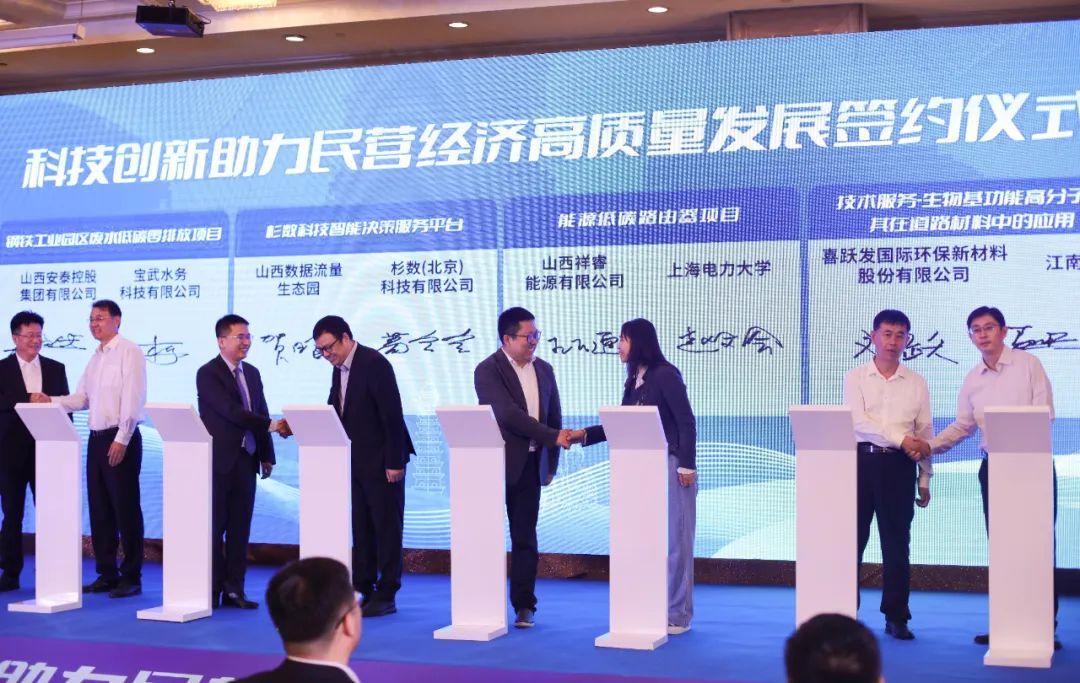 山西祥睿能源有限公司、山西安泰控股集團有限公司、山西晉城鋼鐵控股集團有限公司、山西數(shù)據(jù)流量生態(tài)園等11家山西民營企業(yè)與寶武水務(wù)科技有限公司、中冶京誠工程技術(shù)有限公司、杉數(shù)(北京)科技有限公司等11家企業(yè)、高等院校、科研院所進(jìn)行了科技成果轉(zhuǎn)化運用簽約。 活動期間還舉辦了“合作共建數(shù)字綠色產(chǎn)業(yè)體系 助力山西民營經(jīng)濟高質(zhì)量發(fā)展”分論壇和異地晉商會長聯(lián)席會暨晉滬兩地青年企業(yè)家交流研討會。 |