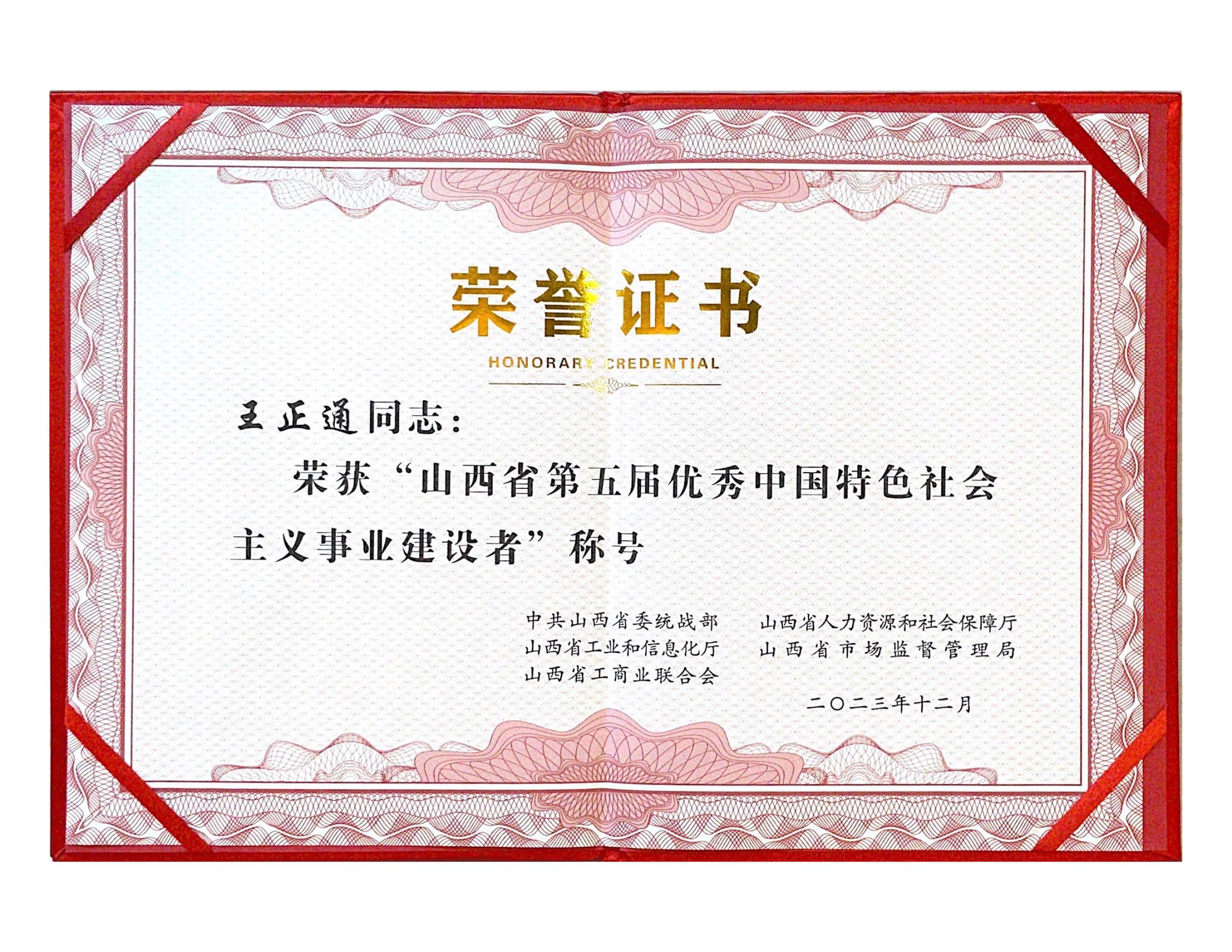 | 祥睿能源王正通榮獲“山西省第五屆優(yōu)秀中國特色社會主義事業(yè)建設者” 稱號 |