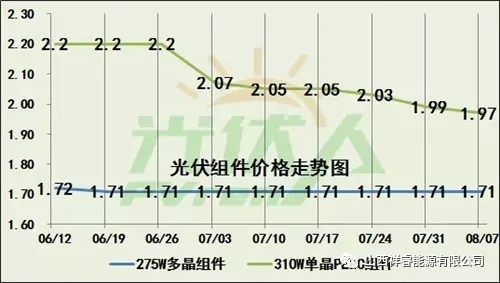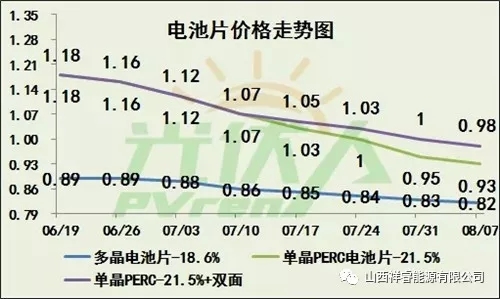 單晶PERC電價的價格相比6月份價格降幅超過20%。已經(jīng)連續(xù)9個星期降價,相信很快將會傳到到組件端