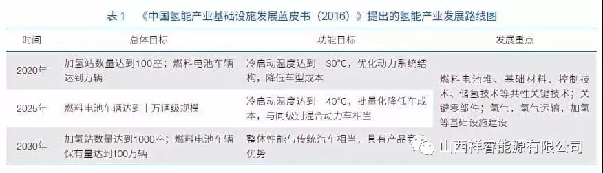 2.4 韓國氫能與燃料電池發(fā)展現(xiàn)狀 韓國在氫能和燃料電池領(lǐng)域也有較強的規(guī)劃布局,但是其相關(guān)技術(shù)實力較歐、美、日略遜一籌。以現(xiàn)代等汽車企業(yè)為依托,韓國政府未來 5 年內(nèi)用于氫燃料電池以及加氫站的補貼將達到 20 億歐元。目標是到 2022 年為 15 000 輛燃料電池汽車和 1 000 輛氫氣公交車提供資金。其中資助計劃包括 310 個新的氫氣加氣站,政府還將制定使用法規(guī)[8]。韓國政府于 2019 年 1 月發(fā)布“氫能經(jīng)濟發(fā)展路線圖”,旨在大力發(fā)展氫能產(chǎn)業(yè),以引領(lǐng)全球氫燃料電池汽車和燃料電池市場發(fā)展。 根據(jù)該路線圖,韓國政府計劃到 2040 年氫燃料電池汽車累計產(chǎn)量由 2018 年的 2 000 余輛增至 620 萬輛,氫燃料電池汽車充電站從現(xiàn)有的 14 個增至 1 200 個。韓國政府表示將開始為燃料電池出租車和卡車提供補貼,到 2022 年燃料電池公交車數(shù)量將增加到 2 000 輛,并預(yù)計在 2021 年開始用燃料電池車取代燃油警車。 在固定式燃料電池方面,韓國目前的發(fā)展重點在于大型燃料電池發(fā)電站。韓國斗山集團是推動該項目建設(shè)的主體。2017 年 6 月,該集團完成了韓國最大的氫能燃料電池發(fā)電站的建設(shè),而該發(fā)電站的建設(shè)成本大約有 3 600 萬美元。據(jù)報道,該發(fā)電站每年可生產(chǎn) 144 臺 440 千瓦的燃料電池系統(tǒng),可以滿足市場的需求。 3 國內(nèi)氫能與燃料電池發(fā)展現(xiàn)狀及分析 3.1 國內(nèi)氫能產(chǎn)業(yè)鏈的結(jié)構(gòu)分析 氫能產(chǎn)業(yè)鏈主要包括:氫的制取、儲存、運輸和應(yīng)用等環(huán)節(jié)。氫既可廣泛應(yīng)用于傳統(tǒng)領(lǐng)域,又可應(yīng)用于新興的氫能車輛(包括乘用車、商用車、物流車、叉車、軌道車等)以及氫能發(fā)電(包括熱電聯(lián)供分布式發(fā)電、發(fā)電儲能、備用電源等)。 為加快發(fā)展中國的氫能產(chǎn)業(yè),依據(jù)目前的資源條件和能源產(chǎn)業(yè)狀況,應(yīng)在加強氫安全的基礎(chǔ)上,積極推行氫源多元化及氫能多元化和規(guī)?;瘧?yīng)用。我國近年來每年純度 99% 以上氫氣的使用量約 700 億立方米(約 600 萬噸),年產(chǎn)值 1 200 億元人民幣以上。目前國內(nèi)發(fā)展氫能的生產(chǎn)方式,主要有煤制氫、天然氣制氫和工業(yè)副產(chǎn)氫,其中工業(yè)副產(chǎn)氫追溯其上游一次能源主要還是煤和天然氣。 因此,目前國內(nèi)氫能生產(chǎn)主要還是依靠化石能源,而電解水制氫僅占比 2%—4%,占比較為有限。對于氫能的消費,國內(nèi)大約 90% 或更多純度 99%左右的氫氣都用于煉化產(chǎn)品生產(chǎn)過程中的加氫,以及合成氨、合成甲醇、石油煉化等化工領(lǐng)域,僅有 2%—4% 的氫氣作為工業(yè)氣體用于冶金、鋼鐵、電子、建材、精細化工等行業(yè)的還原氣、保護氣、反應(yīng)氣等,而在燃料電池汽車領(lǐng)域氫能的利用更少??傮w看,目前我國具備一定的氫工業(yè)基礎(chǔ),但是仍然還是以工業(yè)原料為主。氫作為能源消費的市場規(guī)模依然較小。 在氫能和燃料電池發(fā)展方面,我國也一直不落后。2016 年 10 月,中國標準化研究院資源與環(huán)境分院和中國電器工業(yè)協(xié)會發(fā)布的《中國氫能產(chǎn)業(yè)基礎(chǔ)設(shè)施發(fā)展藍皮書(2016)》首次提出了我國氫能產(chǎn)業(yè)的發(fā)展路線圖(表 1)。對我國中長期加氫站和燃料電池車輛發(fā)展目標進行了規(guī)劃?!吨袊圃?2025》明確提出燃料電池汽車發(fā)展規(guī)劃,更是將發(fā)展氫燃料電池提升到了戰(zhàn)略高度。目前不論是國內(nèi)的氫能技術(shù),還是氫能產(chǎn)業(yè)基礎(chǔ),雖然都具有一定的戰(zhàn)略規(guī)模,但是與國際最先進水平還有一定的差距。
