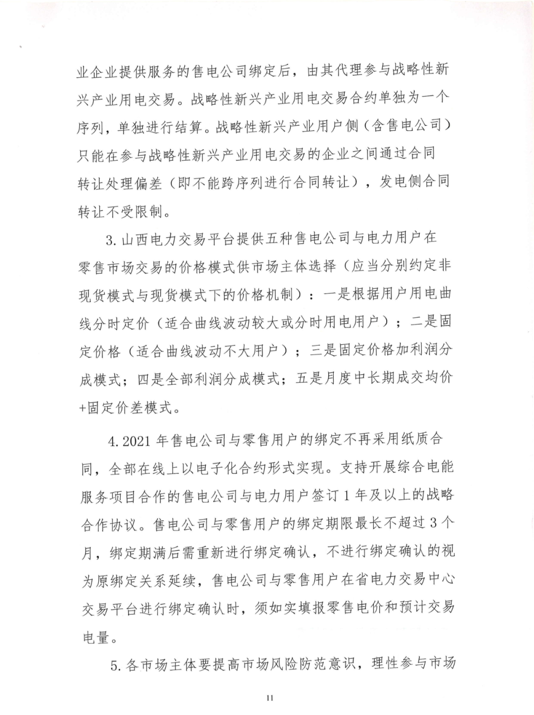 山西近期出臺(tái)《2021年山西省電力市場(chǎng)交易組織方案(征求意見(jiàn)稿)》。其中稱(chēng)為規(guī)避市場(chǎng)風(fēng)險(xiǎn)、推動(dòng)線上交易,普通交易暫不開(kāi)展年度交易、不采取雙邊交易方式。有人反映:取消雙邊交易對(duì)明年的市場(chǎng)影響非常大,售電公司可能面臨毀約的風(fēng)險(xiǎn)。 2021年山西省發(fā)電量調(diào)控目標(biāo)預(yù)安排為∶優(yōu)先發(fā)電量838億千瓦時(shí),市場(chǎng)化發(fā)電量1462億千瓦時(shí)(含自備機(jī)組發(fā)電量129億千瓦時(shí)),折算市場(chǎng)交易電量1300億千瓦時(shí)。 電力用戶(hù)∶除居民、農(nóng)業(yè)、重要公用事業(yè)和公益性服務(wù)等行業(yè)電力用戶(hù)以及電力生產(chǎn)供應(yīng)所必需的廠用電和線損之外,逐步全面放開(kāi)經(jīng)營(yíng)性領(lǐng)域電力用戶(hù)參與市場(chǎng)交易。供氣、供熱、供水、污水處理等公用事業(yè)用戶(hù)自愿申請(qǐng)參與市場(chǎng)交易,應(yīng)向省電力交易中心提供市場(chǎng)風(fēng)險(xiǎn)自擔(dān)承諾書(shū)。 執(zhí)行大工業(yè)用電的電力用戶(hù)不受電壓等級(jí)和電量限制;執(zhí)行一般工商業(yè)用電的電力用戶(hù)不受電壓等級(jí)限制,但上年度(2019年11 月-2020年10月)用電量要在500萬(wàn)千瓦時(shí)以上(果品冷藏用電和電信基站用電除外),或新投產(chǎn)企業(yè)用電報(bào)裝容量要在1500千伏安以上;支持14個(gè)戰(zhàn)略性新興產(chǎn)業(yè)和出口加工貿(mào)易類(lèi)企業(yè)、"煤改電"交易電量全電量參與市場(chǎng)交易,不受電壓等級(jí)和電量限制;支持增量配電網(wǎng)試點(diǎn)參與市場(chǎng)交易,擁有配電網(wǎng)運(yùn)營(yíng)權(quán)的售電公司、區(qū)域內(nèi)電力用戶(hù)以打包形式全電量參與市場(chǎng)交易,不受電壓等級(jí)和電量限制。 山西電力交易中心月前組織售電公司及零售用戶(hù)綁定結(jié)算方案,對(duì)于可能出現(xiàn)的批零價(jià)格倒掛情況,售電公司需按合同電量全額現(xiàn)金繳納差額費(fèi)用,未完成繳納的,將暫停售電公司批零兩級(jí)市場(chǎng)合同執(zhí)行,具體按相關(guān)規(guī)則執(zhí)行。暫停合同后的結(jié)算原則。 詳情如下:
