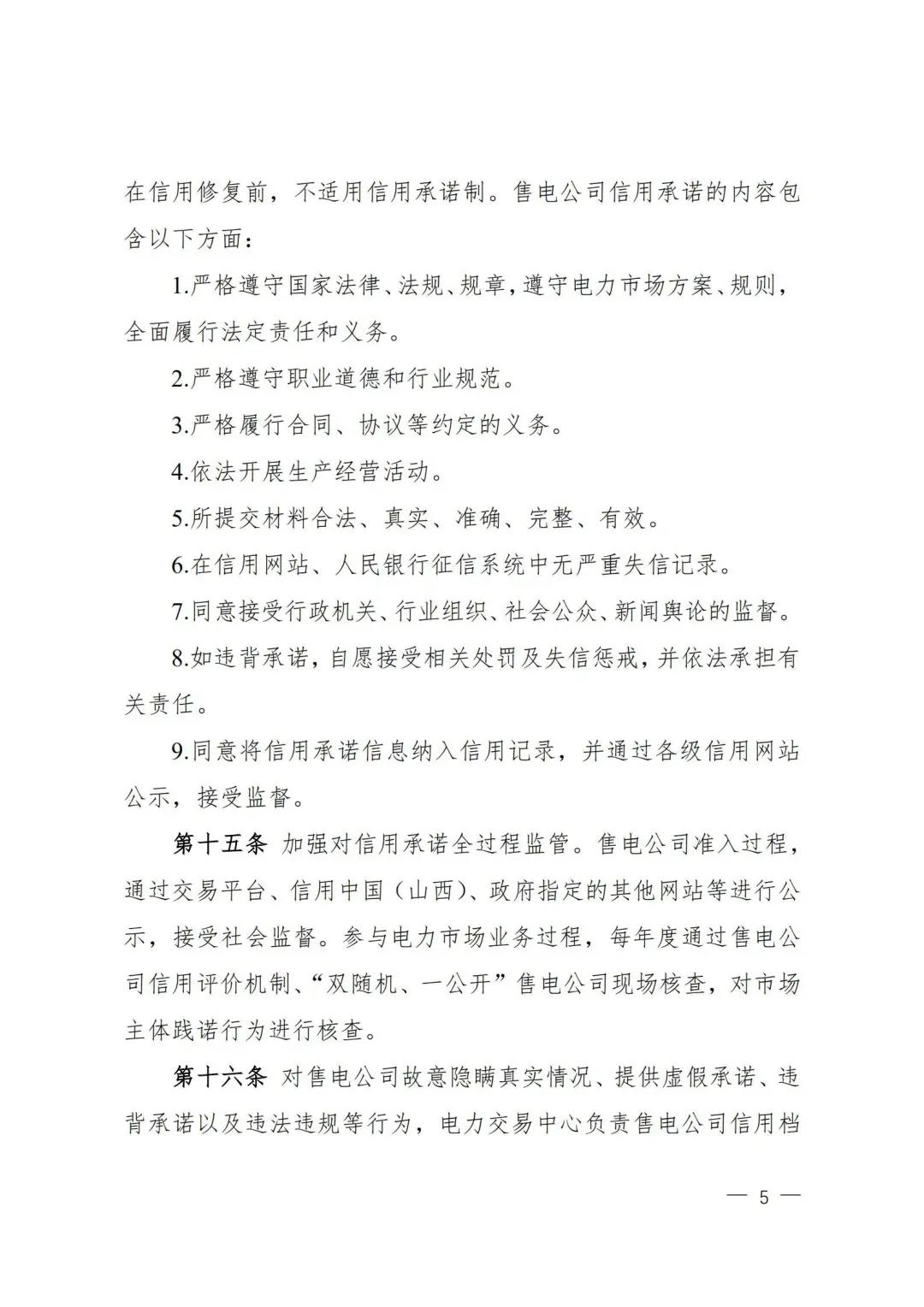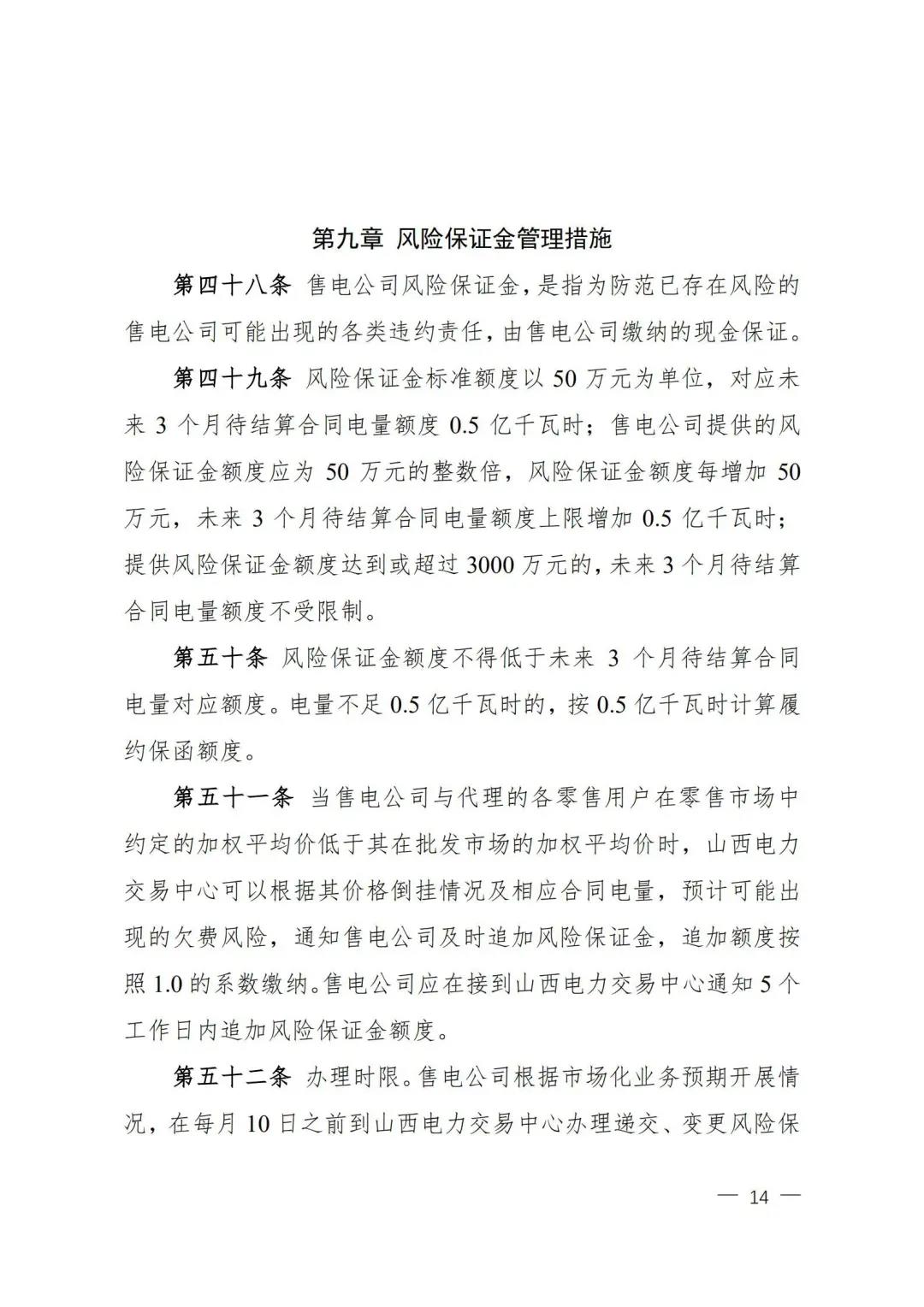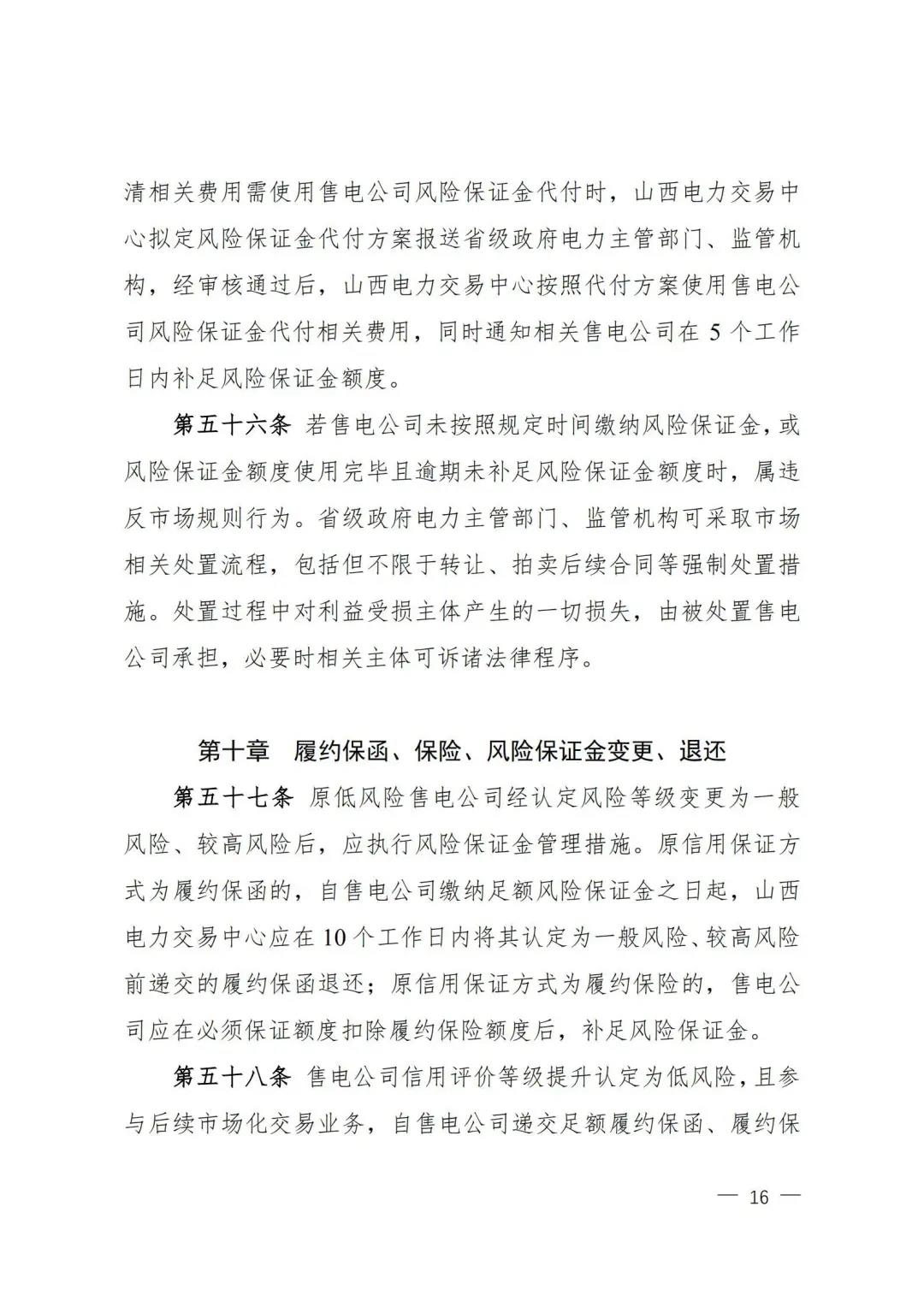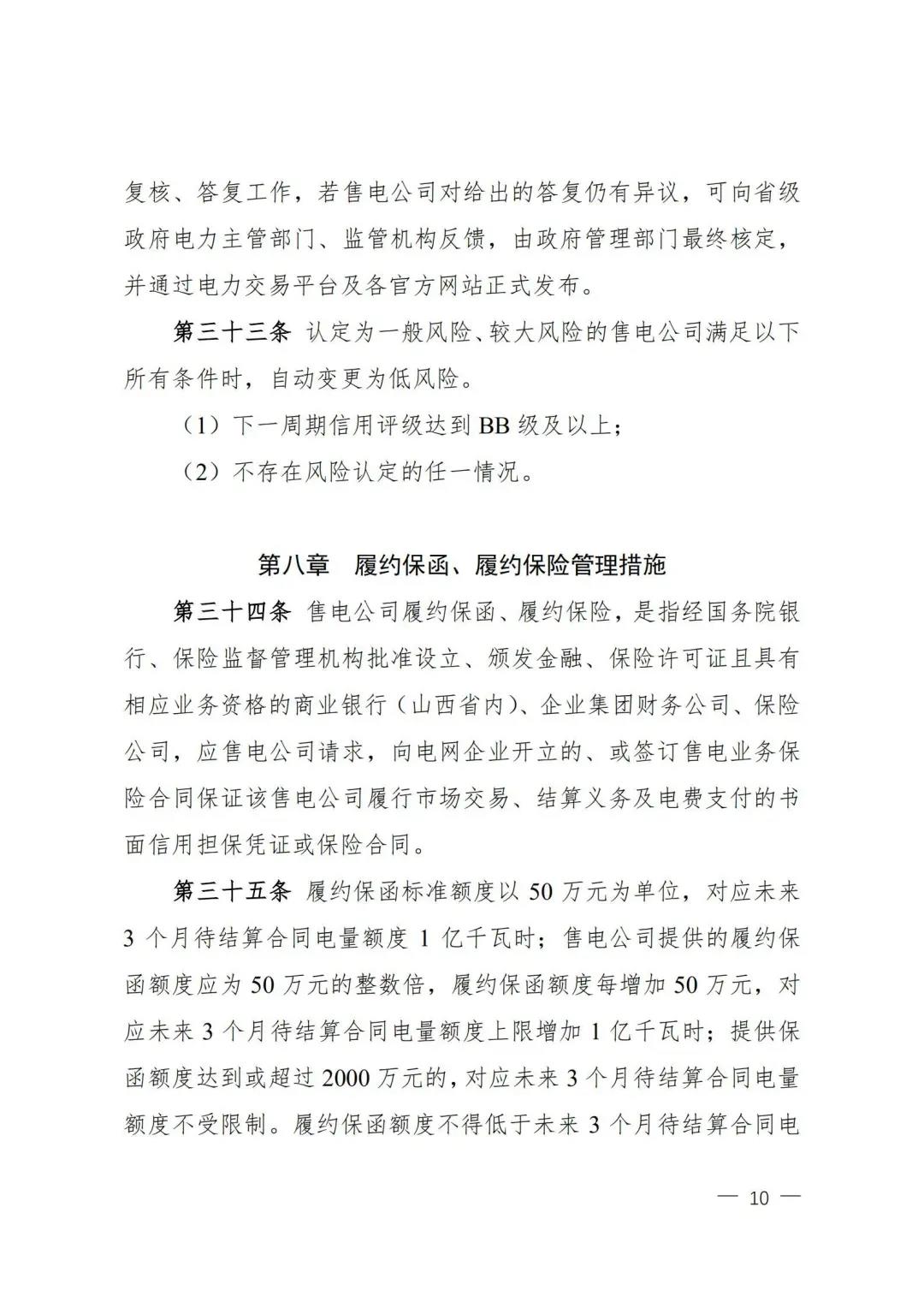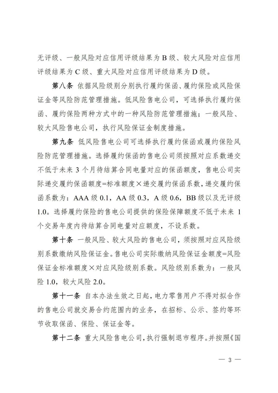 | 山西電力市場售電公司信用評(píng)價(jià)與風(fēng)險(xiǎn)防范管理辦法:依據(jù)風(fēng)險(xiǎn)級(jí)別執(zhí)行履約保函、保險(xiǎn)或風(fēng)險(xiǎn)保證金措施 |