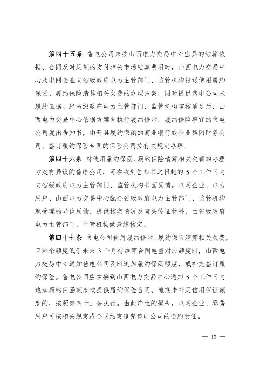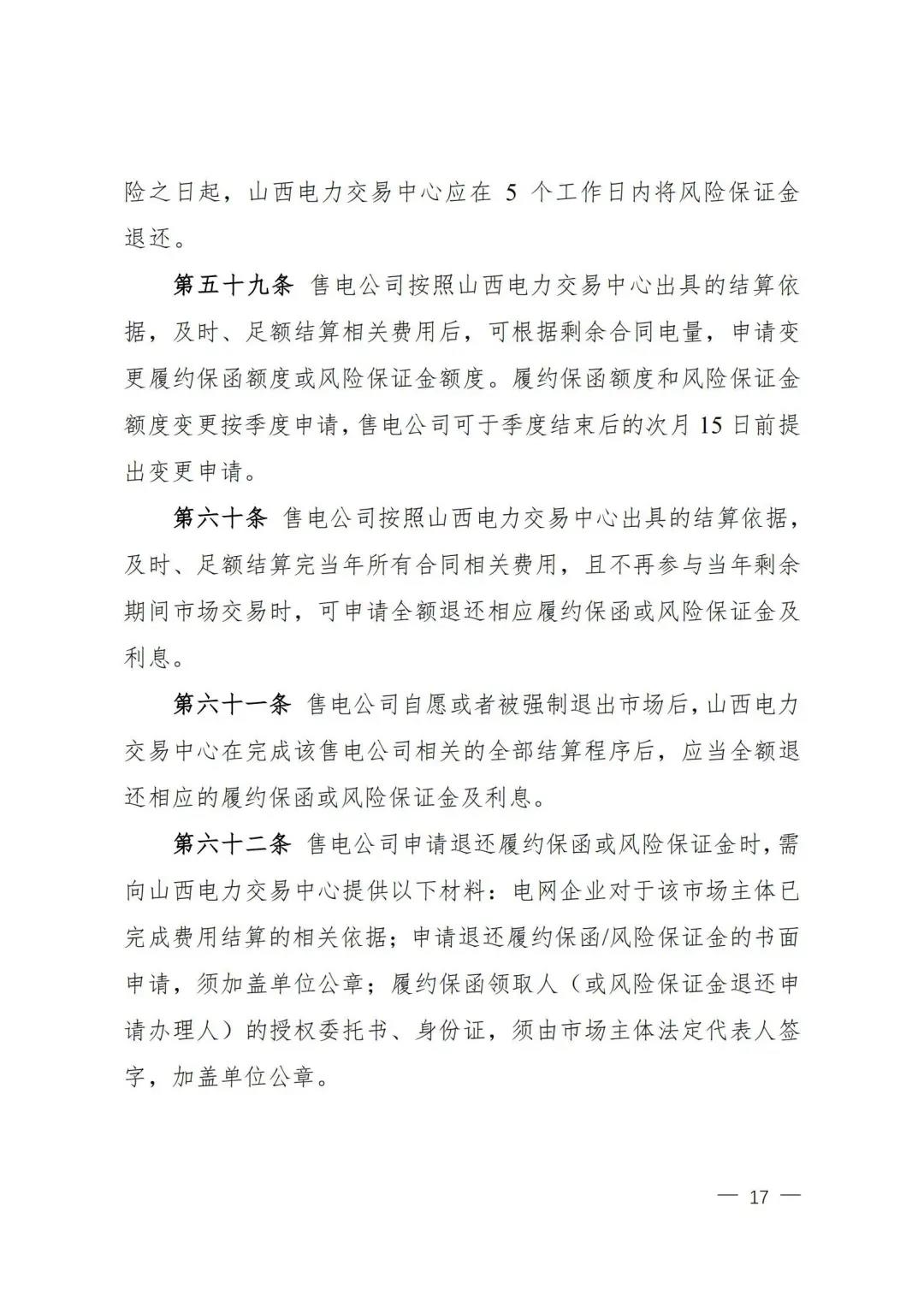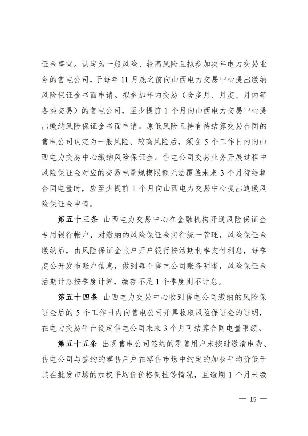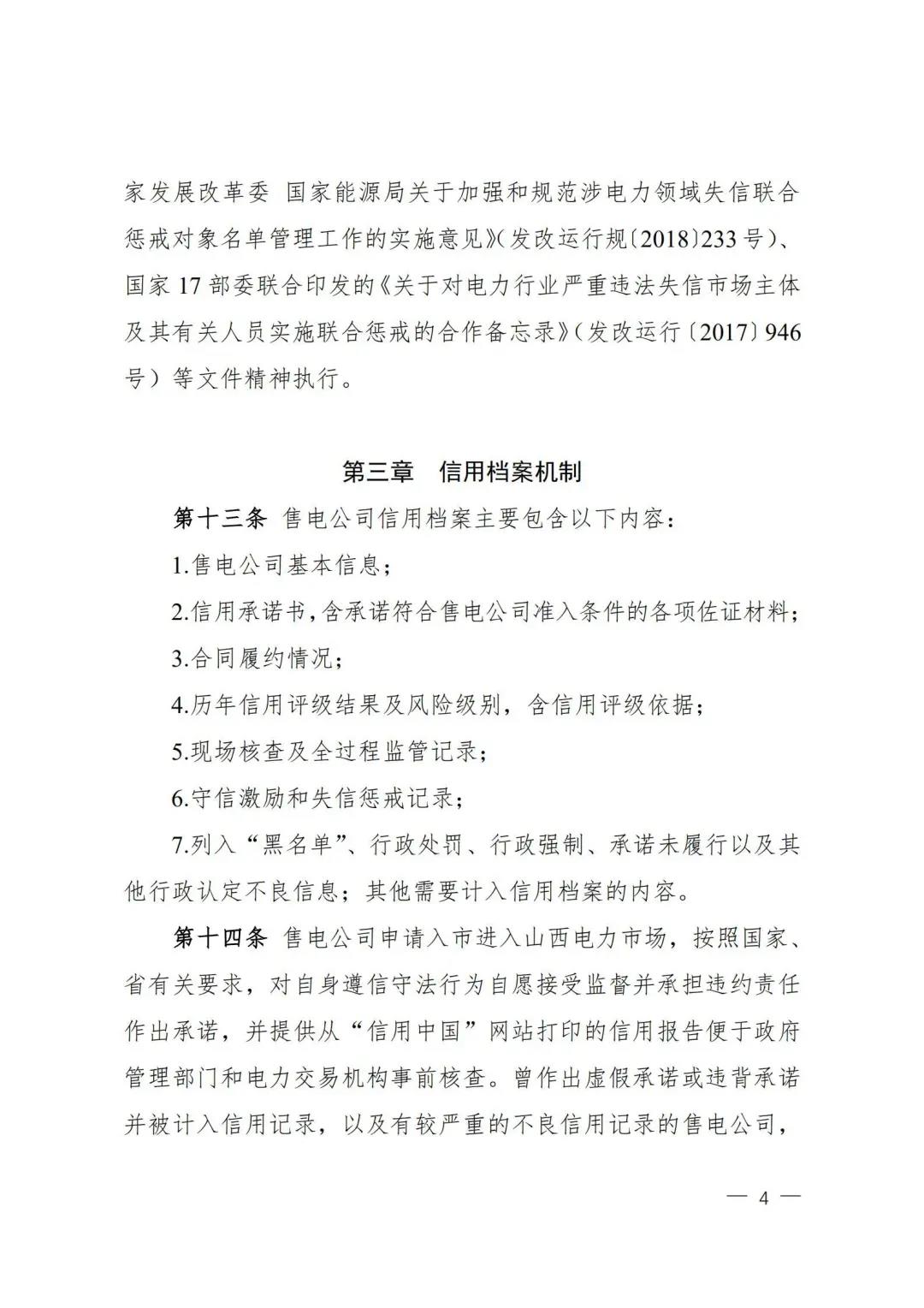 | 山西電力市場售電公司信用評(píng)價(jià)與風(fēng)險(xiǎn)防范管理辦法:依據(jù)風(fēng)險(xiǎn)級(jí)別執(zhí)行履約保函、保險(xiǎn)或風(fēng)險(xiǎn)保證金措施 |